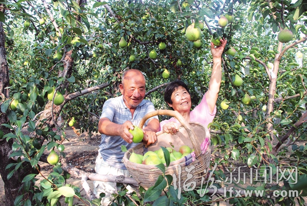临汾新闻网讯 近日,在翼城县王庄乡王壁村千亩梨园内,村民正在采摘成熟的梨。王壁村种植葫芦梨、酥梨、雪花梨和玉露香梨等品种的梨树1000余亩,目前果实已进入成熟期。