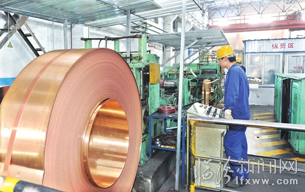 临汾新闻网讯 翼城县腾达春雷公司高铁和电气化铁路专用铜合金棒材项目,总投资2亿元,建设周期为两年。项目建成后,可新增年销售收入1.8亿元,利润720万元,上缴税金316万元,增加就业岗位100余个。图为铜片生产车间。