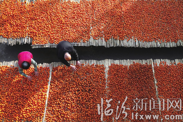 临汾新闻网讯 近年来,翼城县中卫乡吴寨村利用地理优势大力发展甜柿子经济林。乡村两级干部从宣传发动、土地流转到技术支持,从最初5亩试验田发展到现如今数百亩的柿子经济林,为当地村民的经济增长探索出一条新路子。图为11月18日,该村村民正在自家的小院里晾晒柿子。