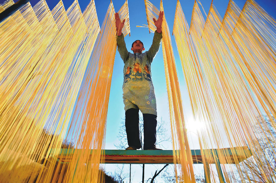 临汾新闻网讯 12月6日,翼城县中卫乡赵家村村民赵占柱正在制作空心挂面。制作空心挂面是赵占柱的家传手艺,为了不让这门手艺失传,年过六旬的赵占柱将手艺无私传授给赵家村村民,带领大家一起制作挂面,增加了村民收入。 吕青月 摄