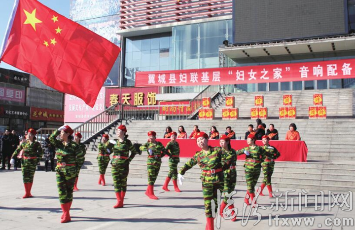 临汾新闻网讯 近日,翼城县妇联在府前广场为15个村级“妇女之家”配备了音响设备,进一步推动基层“妇女之家”开展各项活动,满足广大群众日益增长的精神文化需求。图为音响配备现场进行的文艺表演。