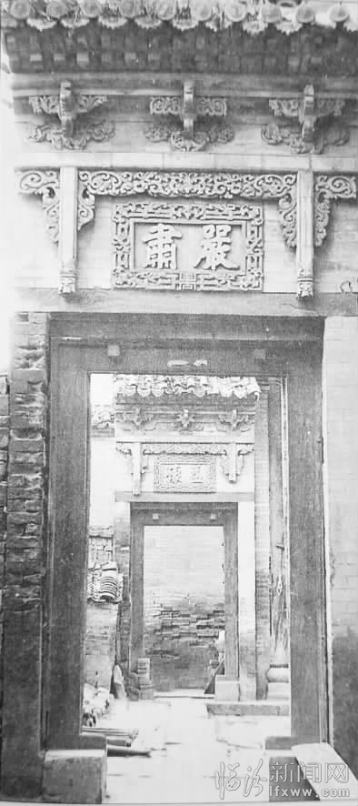 通过种种途径,朋友找到了王天爵宅院老照片,东西厢房的角门上方是精美的仿木垂花砖雕门,镂空雕花清晰可见,第一个门额上是“严肃”二字,第二个门额上是“益豫”。两排房廊前的柱础形状不一,有棱角形的,有圆形的,上面有精细的刀痕,雕着一幅幅画面,具有明清时代特色的窗户彰显了主人和建造工匠的文化底蕴。