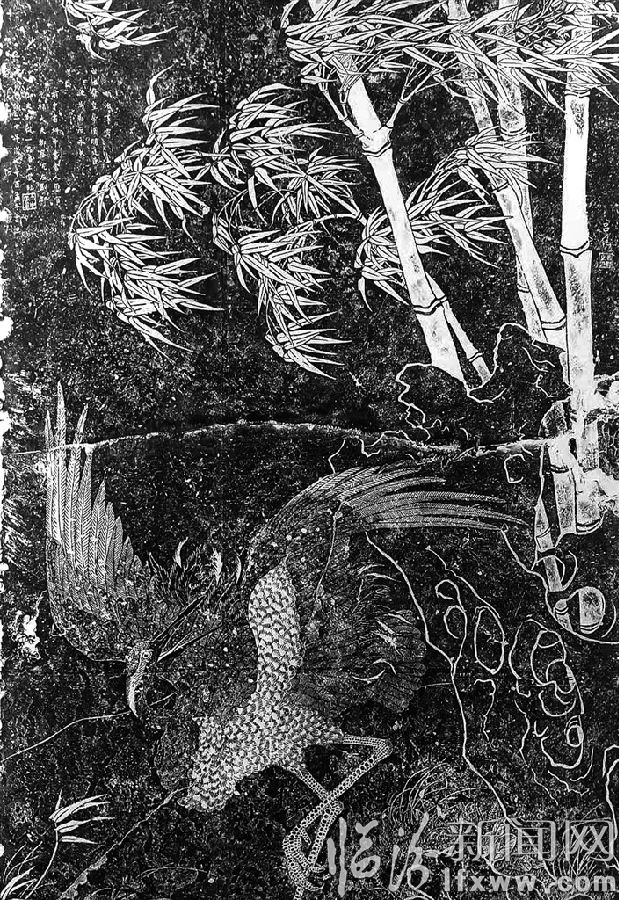 中国为闻名四海的礼仪之邦,国人无论少长皆尊礼重节,对高尚的品德都持有一种欣赏追寻的态度。有鉴于此,古人对于松、鹤、竹、菊等隐喻君子品格的动植物也喜爱有加,文人画中以上述物件为主要题材的屡见不鲜,但是多以松鹤、竹菊两两搭配,很少见到以仙鹤和竹子搭配在一起的画作,而翼城县博物馆内就存有一件《风竹惊鹤图》勒石,现为该馆的镇馆之宝。