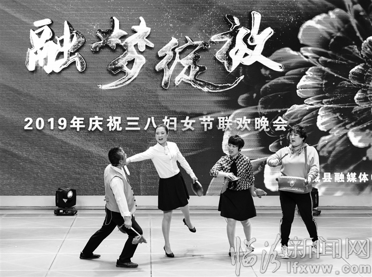 临汾新闻网讯 日前,翼城县融媒体中心举办“融梦绽放”二O一九年庆祝“三八”妇女节联欢晚会。图为晚会现场。