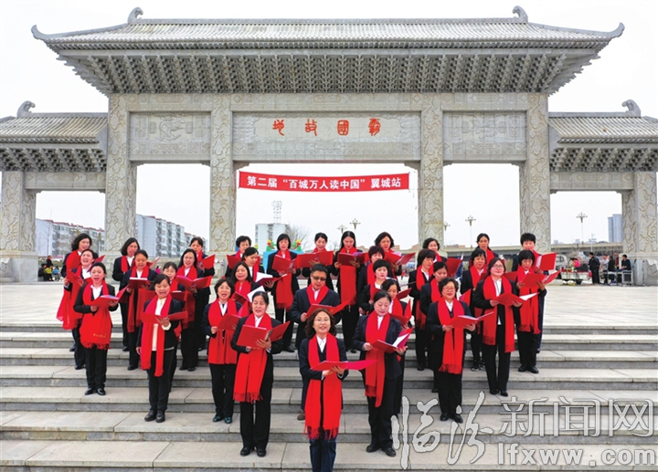 临汾新闻网讯 3月17日,全国各地同步开展了第二届“百城万人读中国”大型公益文化诵读活动,500座城市、超过5万人同一时间,朗诵同一首诗词《读中国》,传颂爱国情,追逐中国梦,为新中国成立70周年献礼。图为翼城县活动现场。