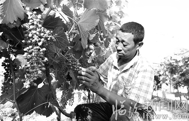 临汾新闻网讯 近日,随着气温的不断升高,葡萄果实进入了第二次生长的高峰期。为了提高葡萄的产量和品质,果农们抓住这一时机对葡萄进行肥水、病虫害、疏果等管理。图为6月17日,翼城县里砦镇的果农李增亮正在给自家的葡萄疏果。