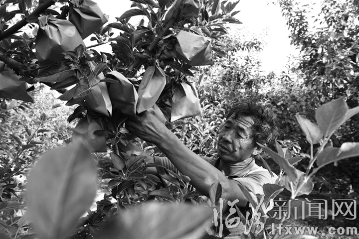 临汾新闻网讯 近日,翼城县里砦镇的村民韩跃进正在自家的果园内忙着给苹果套袋。入夏以来,果农们抓住果树生长的关键期,加强果树病虫害防治、修剪、施肥和浇水等管理,确保苹果增产增收。