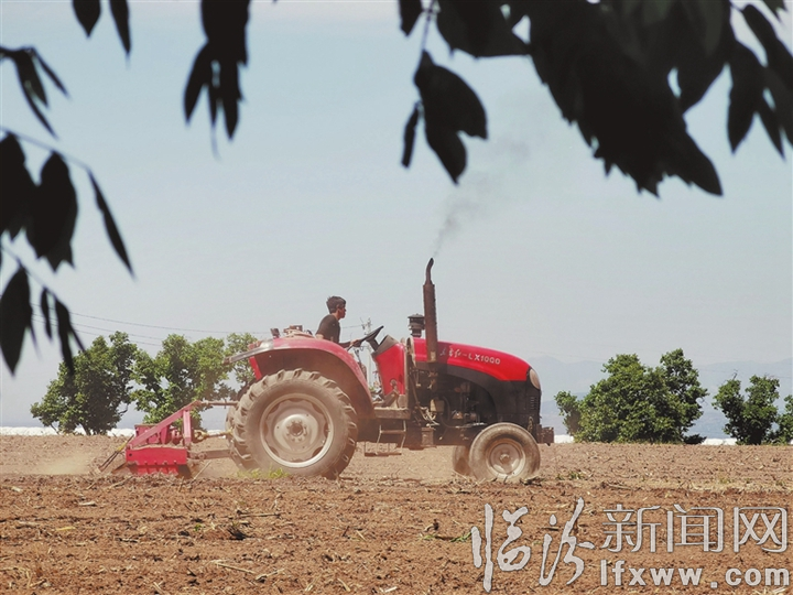 临汾新闻网讯 5月4日,在翼城县中卫乡武子官庄村,农机服务人员正驾驶拖拉机进行旋耕作业。今年,翼城县积极宣传推广大豆玉米带状复合种植新模式,帮助种植户尽快掌握技术要领,确保不误农时及时播种。记者 魏 华 摄