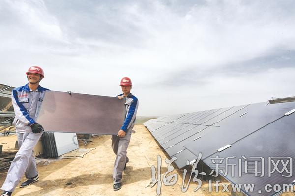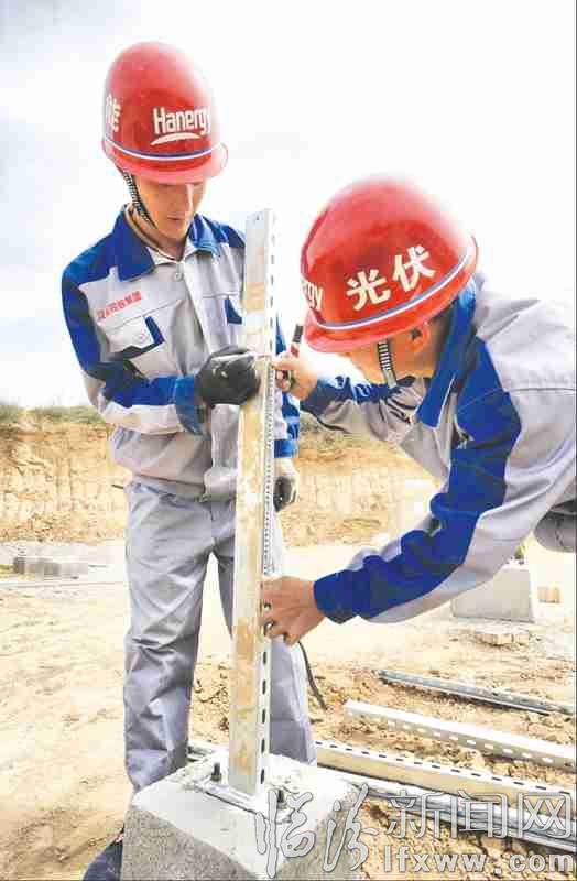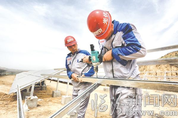 临汾新闻网讯 4月20日,记者在永和县阁底乡阴德河光伏电站看到,数百块薄膜光伏电板整齐地安装在向阳的坡地里,在阳光的照射下格外耀眼。安装现场,电钻声、切割机声此起彼伏,数十名工人正在忙碌着。