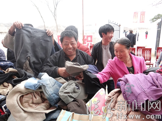 寂静的小山村突然来了这么多远方来客,并从喇叭里听到这些客人来为村里捐赠衣物,留守在村里的村民们都赶到村委会看热闹,几个简易的办公桌一长溜摆开,会员们捐赠的衣物在桌子上堆了老高,“这些衣物都经过了认真挑选及清洗,成色都很好,请大家各取所需。”在大家的招呼下,村民们纷纷走上前来为自己或家人选择合适的衣服。“这个还挺洋气的嘛!”“这件衣服适合十多岁的孩子穿,给你家孩子拿上吧!”“这个你穿上很好看,拿上吧!”“老太太穿这个衣服又好看又保暖,要不您在身上比比大小?”“穿上这件衣服都能去相亲了,肯定有找个好媳妇!”……村干部、会员们帮着村民们挑选、整理衣服,有的村民胳膊上搭了好几件,有的则装了一袋子,欢声笑语在宁静的小村上空盘旋飘荡,这份快乐,感染了在场的每一个人:“这样的活动比我们平时外出纯玩有意义多了!看到家里闲置的衣服能在这里被新的主人喜欢,我们感到十分欣慰!”