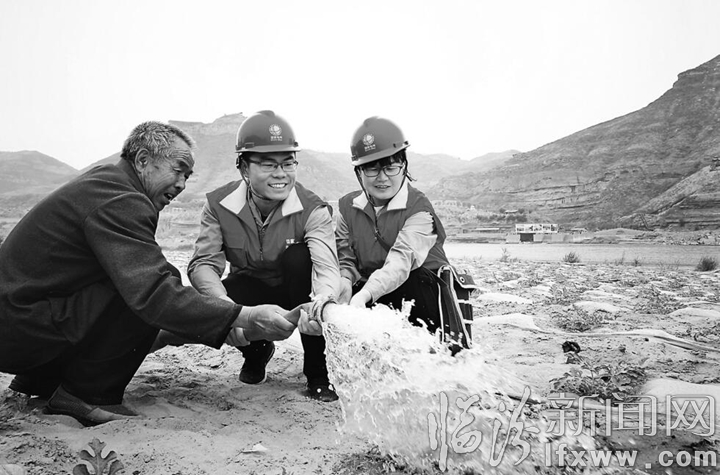 临汾新闻网讯 近日,在永和县于家咀村,供电部门的工作人员和村民于三成一起浇灌西瓜地。伴随着新一轮农网改造升级工程的有序推进,永和县实现了机井通电全覆盖,69岁的于三成高兴地说:“以前浇地得几个好劳力把水泵抬到黄河边抽水,费时费力还不安全。现在好啦,村村通上动力电,电闸一合水就来,取水方便了,种多少地都不嫌累。”