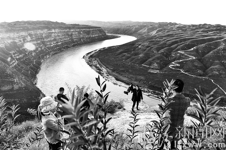 临汾新闻网讯 10月14日,游客在山西永和黄河蛇曲国家地质公园拍照留念。