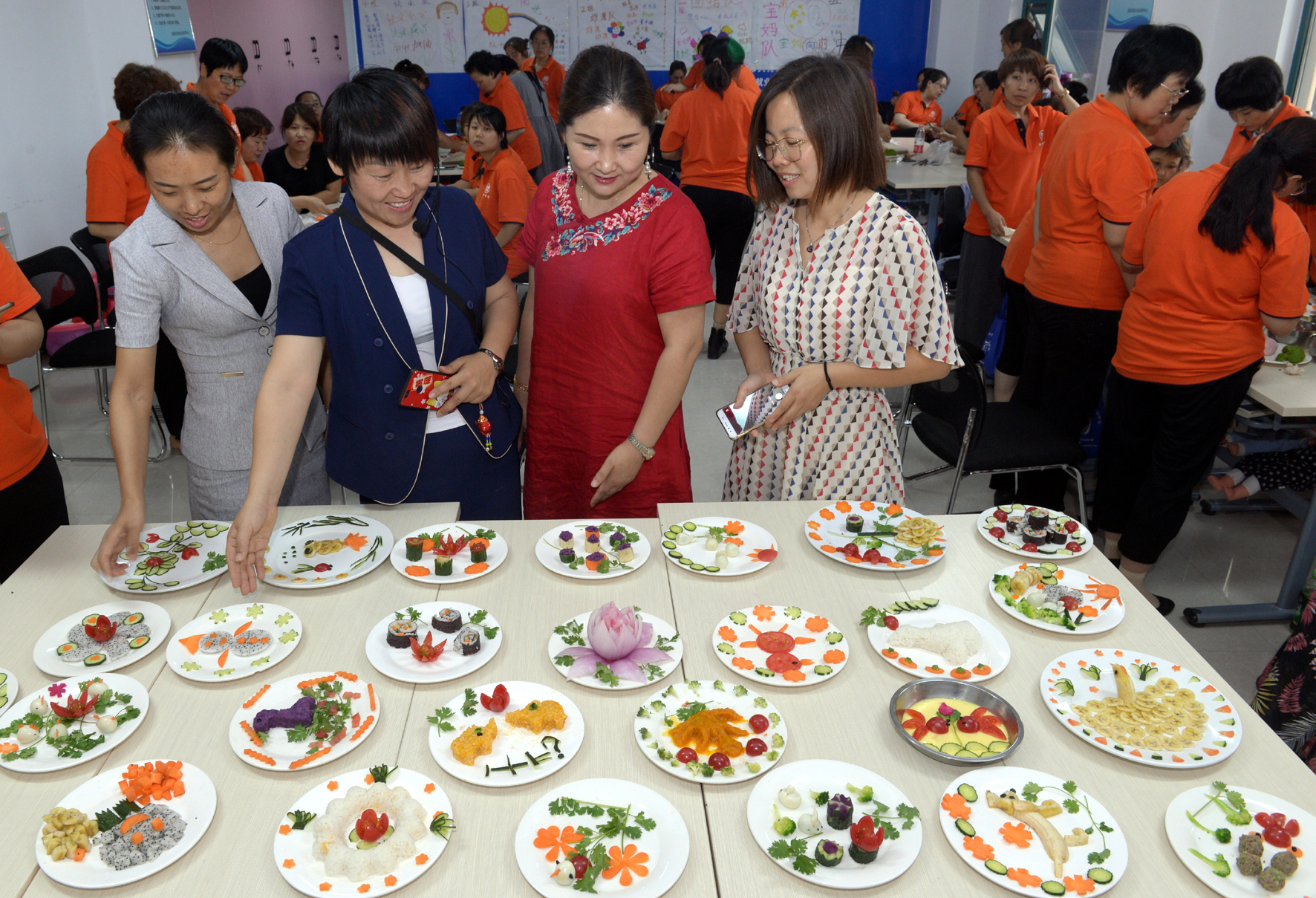 在日前举办的盐湖区全民技能提升工程育婴师培训班上,相关人员对学员制作的营养餐作品进行展示和评比 记者 冯革才 摄