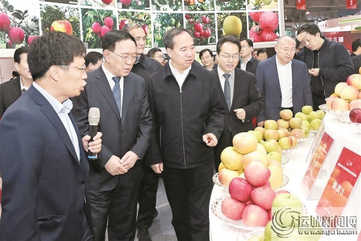 10月21日,王成、李思进、刘志宏、朱鹏等省市领导与嘉宾参观第四届山西(运城)国际果品交易博览会。 记者 雷哲侠 摄