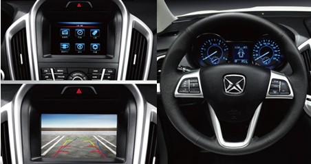 新驭胜S350装备四轮碟刹、智能倒车雷达同时,超标配置一键启动、多功能方向盘、全新科技仪表盘、触摸式液晶中控台、前后可调中央扶手、定速巡航等高端内饰装配一应俱全。