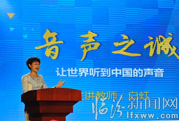 本场道德讲堂以“至善传媒,声声不息”为主题,共分为“光影之真”、“音声之诚”、“云天之美”、“传媒之德”四个篇章。讲堂在开场舞蹈《百花争妍》中徐徐拉开了帷幕,采用传统戏曲艺术与现代舞蹈相结合的表现方式惊艳亮相。在第一篇章“光影之真”中,创意舞蹈《光之炫》将舞者随乐而动的柔美展现到极致。郝建国老师从“光影之源—沟通的需求”、“光影传递信息的发展之路”、“对生活的影响”几方面入手,呼唤大家回归光影之真,严把道德标尺。在第二篇章“音声之诚”中,舞蹈《声之韵》充满着浓厚的原始色彩,于铿锵鼓点中表现了远古人类从事生产劳动的声音。白虹老师通过讲解声音和文字的产生与发展向大家说明了声音的重要性,并着重强调传媒人声音要真诚,要有勇气,要讲好中国故事,传播好中国声音。诗朗诵《中国的声音》中不仅传达出了传媒人的艰苦付出,而且也向新一代的传媒人提出了深深寄寓和希望。舞蹈《天之魅》掀开了第三篇章“云天之美”,舞者如水、清澈灵动传递了美的享受。赵琳老师向传媒人发出了“美是需要不断探索的”、“微笑是对云天之美最好的表达”、“云天之美是凝聚生命之德”的号召。在第四篇章中,赵文国老师讲述了传播技术发展的历史,通过分析典型案例对传媒人的素养、情怀和智慧等方面均提出了具体要求。四个篇章完毕后,张雪老师与学生们演唱了《点亮未来》、《红旗飘飘》、《阳光路上》等歌曲,现场氛围达到高潮。道德讲堂在《走向复兴》的激昂曲调中落幕。
