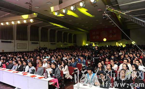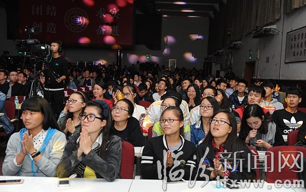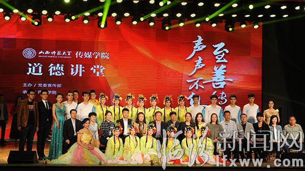 临汾新闻网讯 (记者 闫锐鹏) 10月19日,由山西师范大学党委宣传部主办、传媒学院承办的道德讲堂在师大文化艺术活动中心举办。千余名师生共同聆听和观看了此次道德讲堂。