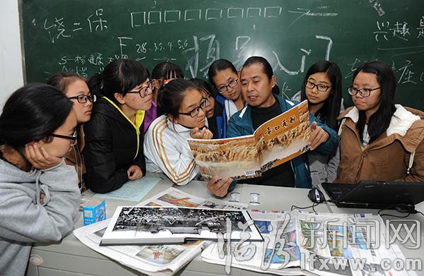 11月7日,在山西师范大学的摄影公益课堂上,该校新闻中心摄影师饶二保在为学生讲解新闻照片拍摄经验。l连日来,饶二保老师对师大校报记者团和感光度摄影协会进行了题为“兴趣是最好的老师”摄影讲座,通过实际案例、摄影经验分享等环节,培养学生的兴趣爱好,丰富校园生活。