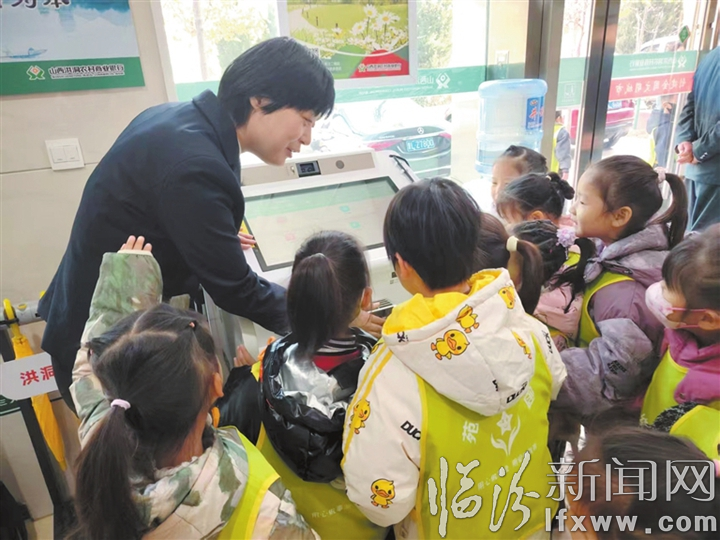 临汾新闻网讯 洪洞农商银行梗壁分理处近日精心组织策划了一场“小小银行家探秘之旅”,邀请幼儿园小朋友走进营业大厅,通过参观和互动游戏,了解金融业务,将金融启蒙融入童真探索。图为小朋友了解智慧柜员机。