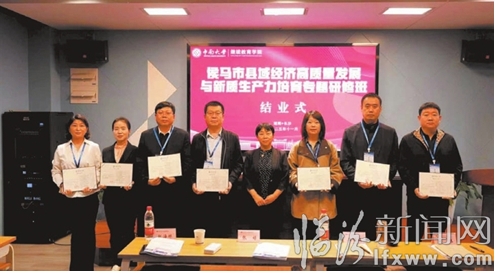 征程万里风正劲,重任千钧再扬帆。本次侯马市“县域经济高质量发展与新质生产力培育”中南大学研修班的成功举办,不仅为侯马干部队伍能力提升注入了新活力,更为侯马高质量发展提供了新动能。全体学员将以此次培训为新起点,进一步解放思想、拓宽视野、提升能力、实干担当,切实把学习成果转化为推动工作的实际成效,为全力推进“一堡四区五融合”发展建设、擦亮“晋都新田·通衢侯马”金字招牌,奋力谱写中国式现代化侯马篇章作出新的更大贡献!