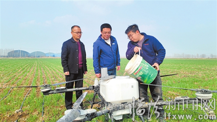 临汾新闻网讯 近日,市农业农村局、洪洞县农业农村局农技专家在洪洞县辛村镇辛北村的农田里,指导无人机“飞手”开展叶面肥喷施作业。