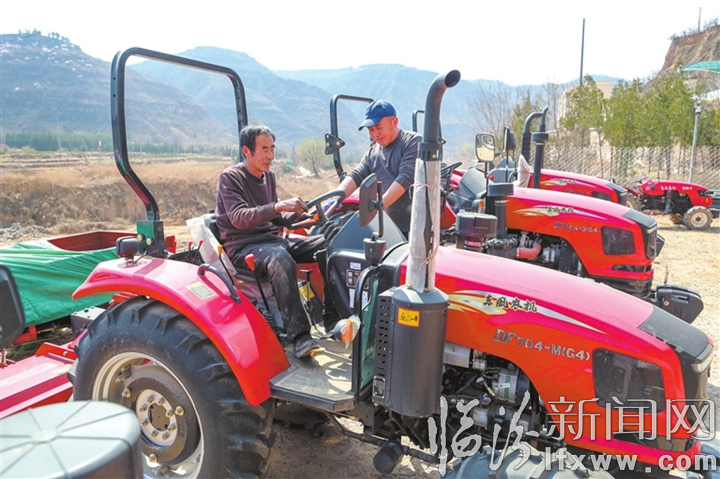 3月26日,在大宁县东风农机公司,农机手正在挑选、购置农机,助力春耕生产。