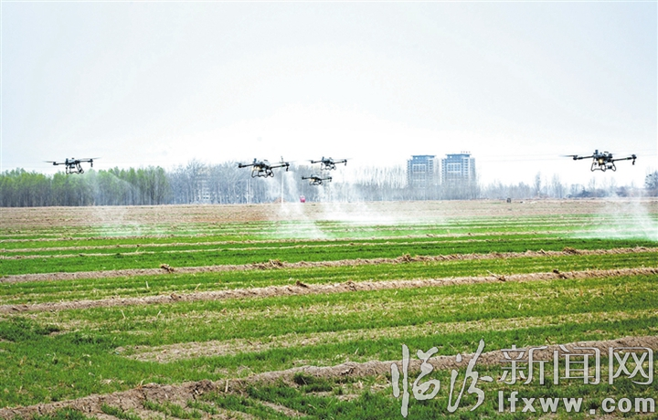 临汾新闻网讯 近日,植保无人机在襄汾县邓庄镇燕村高标准农田建设示范区进行喷洒作业。当下正值春耕春管时节,襄汾县农机部门结合实际,适时开展了无人机液肥喷施作业,通过推广先进农业机具应用技术,不断补齐农机装备短板,用科技力量助力农业生产高质量发展。