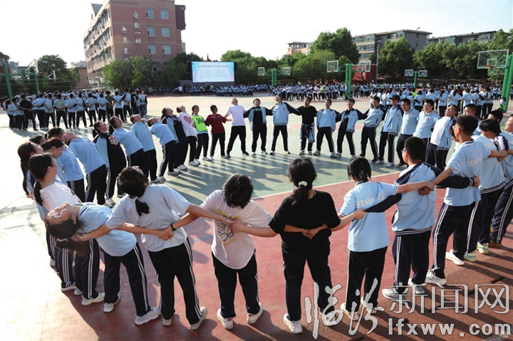 临汾新闻网讯 高考临近,我市各中学组织开展了丰富多彩的减压活动,让高三学生在复习备考之余,愉悦身心,轻松应考。图为山西师范大学实验中学高三学生正在进行“花开花落”游戏。