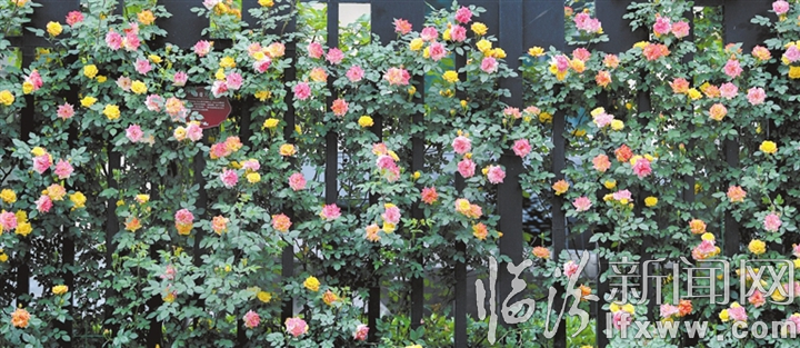 市区解放路花墙繁花正艳、色彩宜人