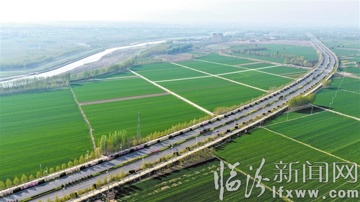 4月7日,在襄汾县邓庄镇燕村高标准农田建设示范区,连片麦田与公路、河流交相辉映,绘就出一幅沃野千里、粮丰农兴的乡村画卷。